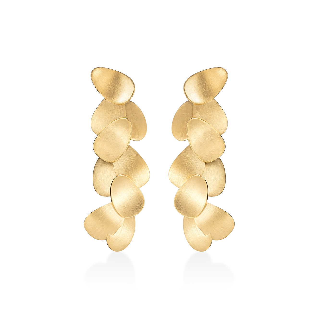 Brinco Folhas maxi, feito à mão em prata com banho de ouro amarelo 18k, acabamento acetinado.