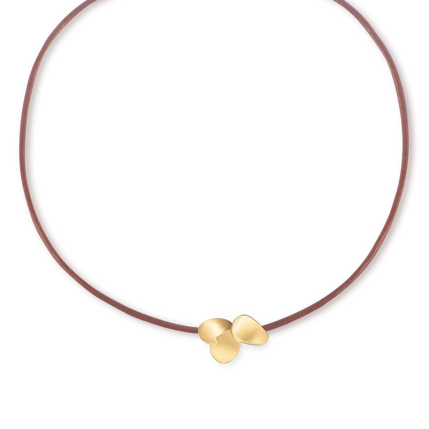 Colar Folhas, feito à mão em prata em banho de ouro 18k e fio de couro.
