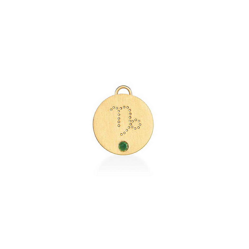 Pingente Signos Capricórnio em prata com banho de ouro 18k e Esmeralda, acabamento fosco.
